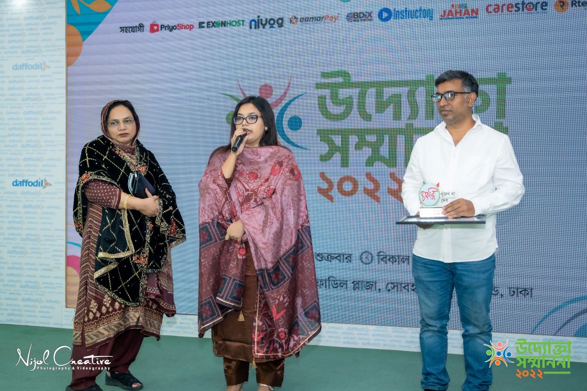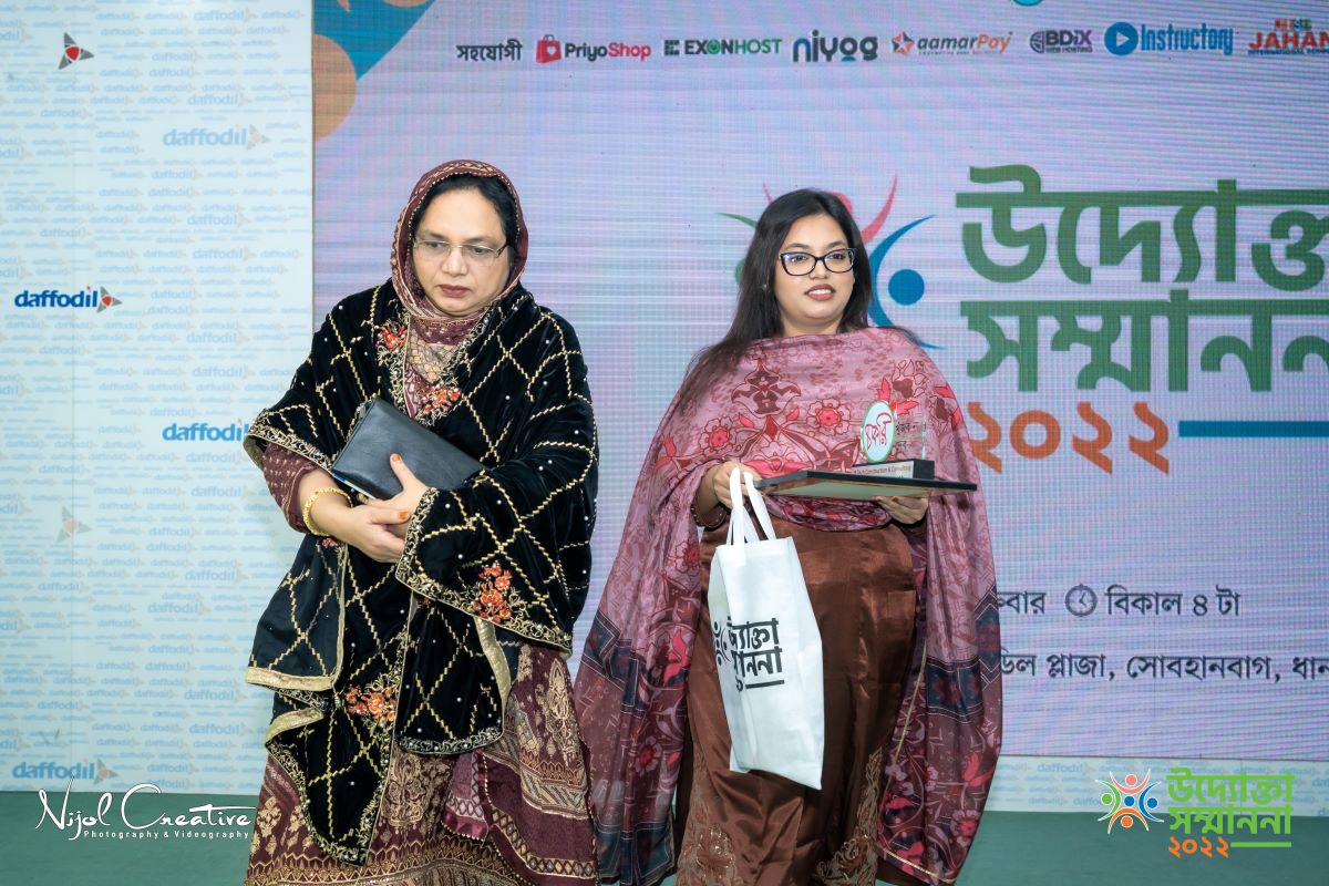 নবীন উদ্যোক্তা স্মারক প্রাপ্ত নাজমনু নাহার উর্মি মঞ্চে মায়ের সাথে ছবি: নিজল ক্রিয়েটিভ