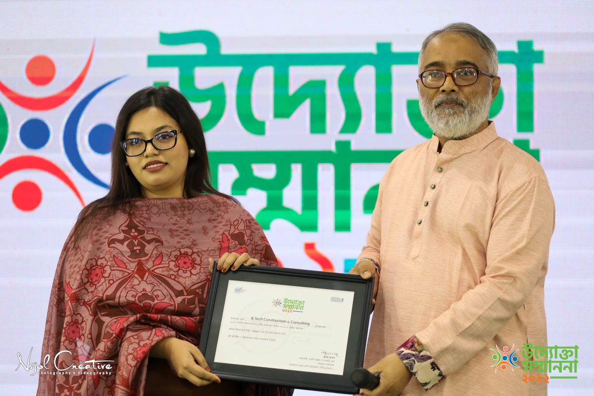 ২০২২ সালের কার্যক্রমের জন্য বি. টেক কনস্ট্রাকশন অ্যান্ড কনসাল্টিং প্রতিষ্ঠানকে উদ্যোক্তা স্মারক ২০২২ প্রদান